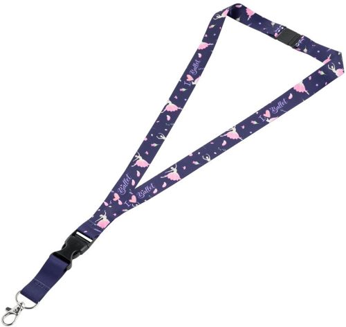 Balerina kulcstartó, nyakba akasztós, 46x2cm, sötétkék-rózsaszín