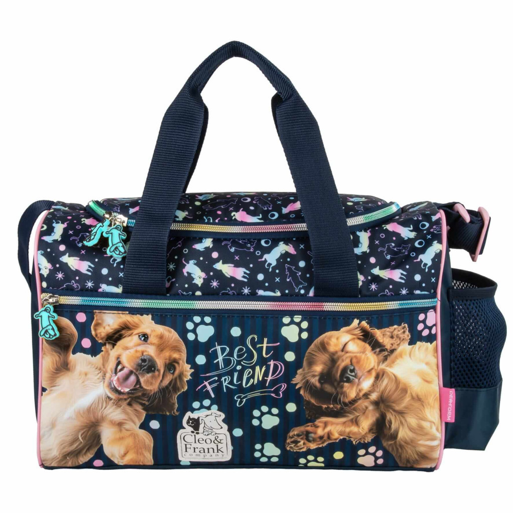 Cleo and Frank sporttáska, 35x21x15cm, CF44, kutyás, spániel Sporttáska, utazótáska két rekesszel és egy külső zsebbel. Tökéletes sportoláshoz, rövid kirándulásokhoz. Állítható vállpánttal és két fogantyúval. Súly 340g