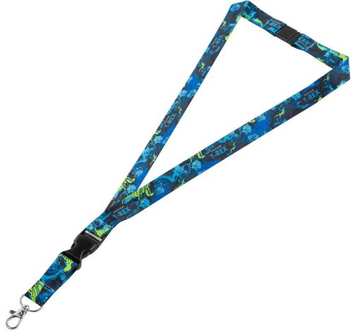 Dinoszaurusz kulcstartó, nyakba akasztós, 46x2cm, T-REX, zöld-fekete