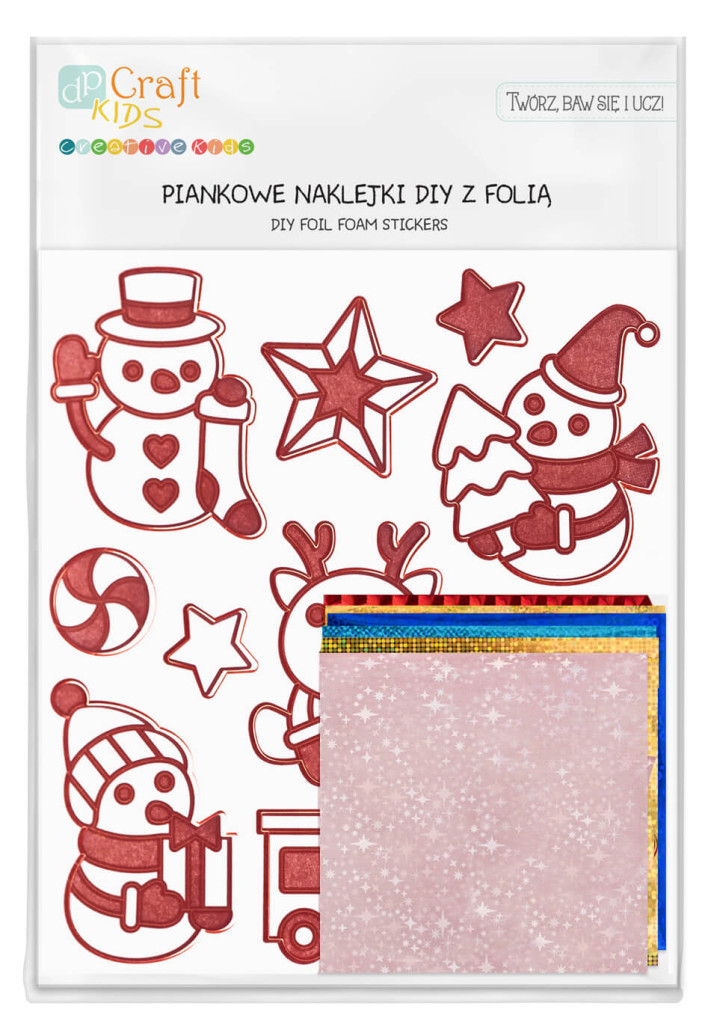 Díszíthető karácsonyi dekorgumi matricák, színes fóliával, hóemberek, 11 db/csomag Ezek a téli témájú dekorgumi matricák nagyszerű ajándék gyerekeknek. A készlet 10 színes fényes fóliát tartalmaz a matricák díszítésére. Hogyan díszítsük a matricákat? 1. Húzza le a külső fóliát a matricának arról a részéről, amit díszíteni szeretne. 2. Válasszon ki egy darab fóliát, nyomja rá a ragasztós felületre az ezüst oldalával, majd ujjával egyenletesen dörzsölje át. 3. Távolítsa el a fólialapot a matricáról úgy, hogy az átdörzsölt rész a felületén maradjon. 4. Ismételje meg ezeket a lépéseket más fóliadarabokkal, amíg az összes minta el nem készül. A készlet nem igényel további eszközöket, a matricákat pedig egyszerű elkészíteni, még a legfiatalabb felhasználók számára is. Fóliák mérete: 15 x 16,6 cm A matricák méretei: 2 x 2 cm-től 5 x 6 cm-ig