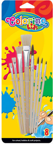 8 különböző végű ecset készlet natúr fából.