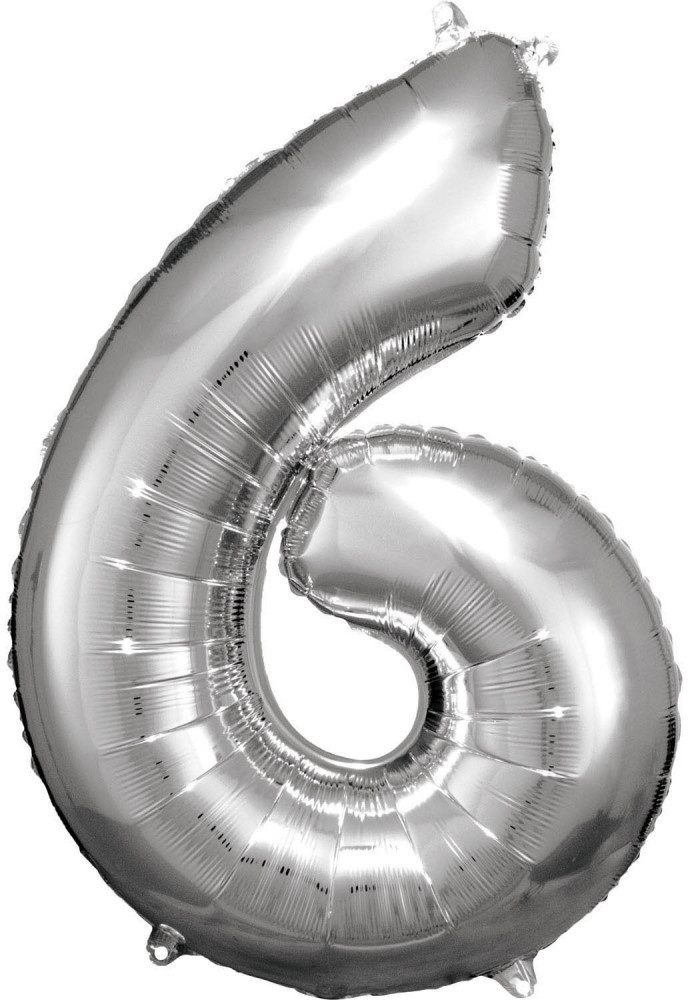 Óriás 6-os szám Fólia lufi, Silver 86*58 cm