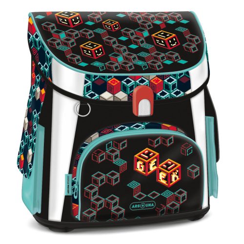 Geek kompakt mágneszáras iskolatáska 41x33x24cm, zöld-fekete