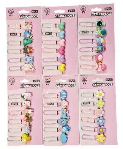 Gémkapocs, 6 db/szett, 55x10 mm, többféle. Az ár egy szettre vonatkozik, amely 6 db gémkapcsot tartalmaz.