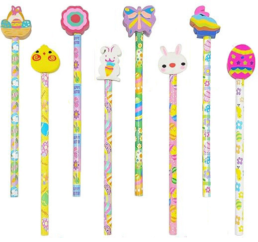 Húsvéti grafitceruza forma radírral, 8 féle minta. Tavaszi és húsvéti minták: lepke, répa, tojás, virág, nyuszi, csibe