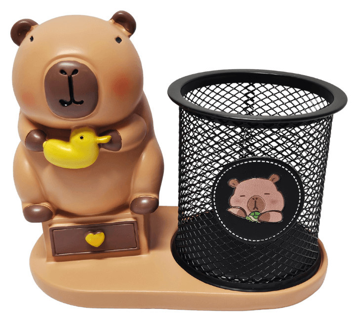 Kapibara ceruzatartó, hálós ceruzatartó kapibara figurával, 14x12cm