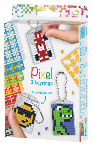 Pixel kulcstartókészítő szett 3 kulcstartó alaplappal, 8 színnel, mintákkal, fiús