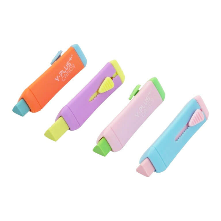 Radírstift, tolóbetétes radír, Y-Plus Candy,pasztell, többféle színben. Radírceruza kitolható radírbetéttel. Méret: 76x23x21mm. Az ár 1 db-ra vonatkozik.