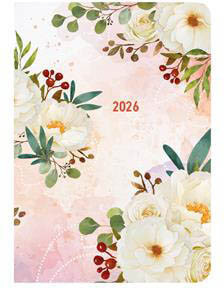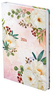 Toptimer határidőnapló, B/6, heti tervező, 2026, Joy, tearózsa. Színes grafikával díszített, matt fóliával bevont, fehér tömbös heti naptár, jelzőszalaggal. -időbeosztás: félórás, 7-21.00 h -matt fóliával bevont borító -lapok 70 g, fehér ofszetpapírból -jelzőszalaggal -térképpel -összesített naptár -éves tervező -havi előjegyző -telefonregiszter/jegyzetoldalak -szitázással emblémázható