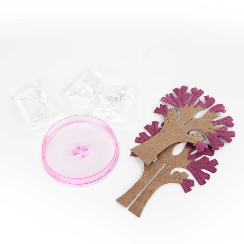 Virágzó fa, Sakura Blooming Tree, Kidea Ez a készlet nagyon jó szórakozást nyújt a tudományos kísérletek iránt érdeklődő gyerekeknek. A karton fa egy különleges anyagot tartalmaz. Bele kell állítani a fát a műanyag tálcába és rá kell önteni a tasakban található speciális vízkeveréket. Egy óra múlva már látható a fa "virágzása", ahogy az ágakon kristályok képződnek. Csomagolás mérete: 21x17x2cm