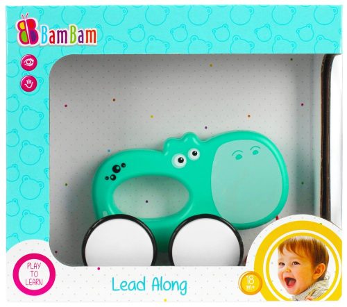 A színes víziló a zsinór húzásával mozog, egyúttal támogatja a gyermek motorikus és testi fejlődését.