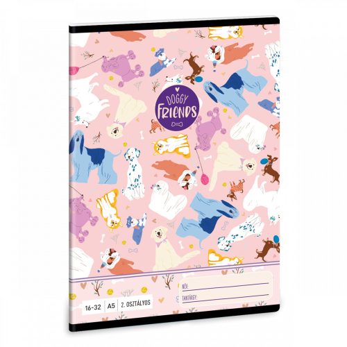 Doggy Friends, kutyás tűzött füzet A/5, 32 lap vonalas 2.osztály (16-32)